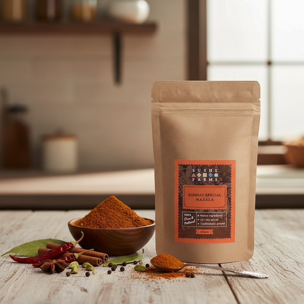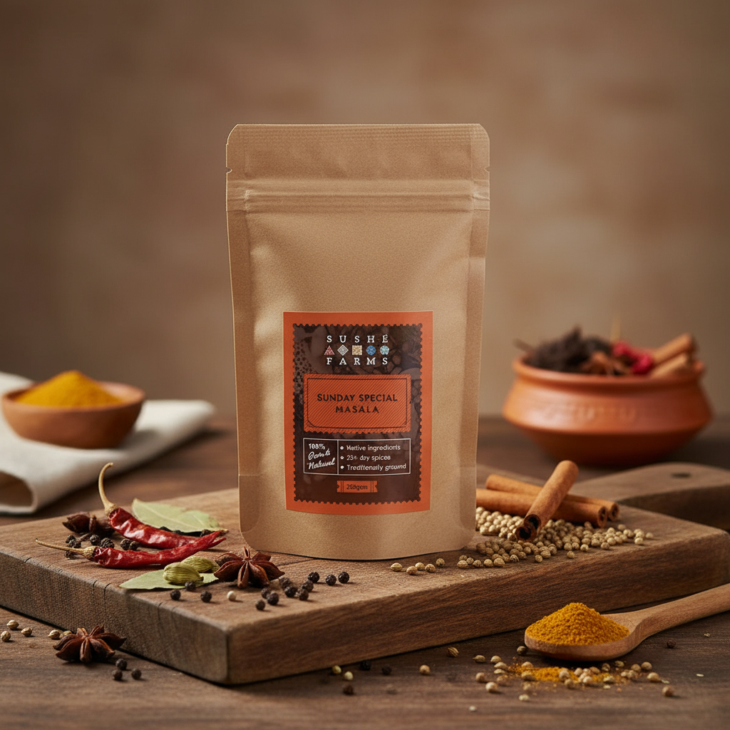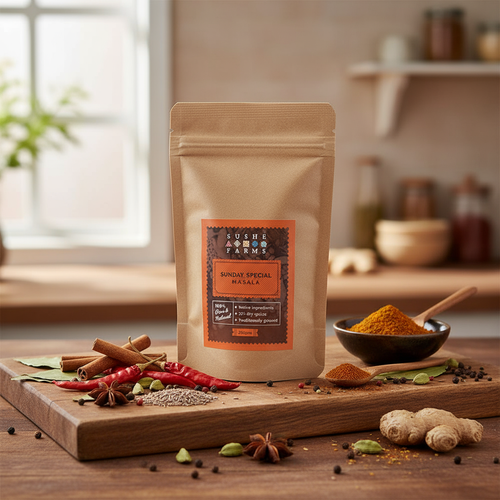 A bold, aromatic blend crafted from fiery red chillies and nearly 20 hand-roasted whole spices. Each ingredient is slow roasted to release its full flavour, then ground into a versatile masala that complements everything from traditional curries to fusion dishes.